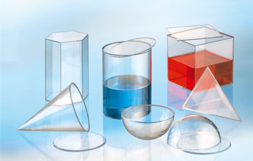Set bestehend aus sechs Füllkörpern aus Acrylglas. Längste Seite jeweils ca. 15 cm.