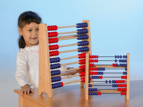 58370A | MathematikAbakusDie klassische Rechenmaschine – aus Holz in 2 Größen. Robust und unverwüstlich.Klein, Maße: 28 x 26,5 x 7,5 cm