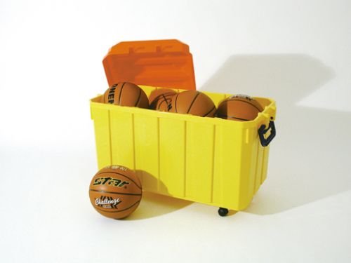 Fahrbare, stapelbare Ballboxgefüllt mit 8 Basketbällen „Challenge“, Größe 7
