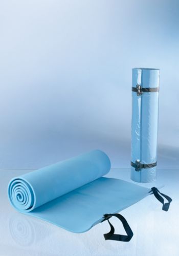 Weiche Sport- und Relaxmatte mit integrierten Schlaufen, die das Zusammenrollen