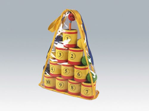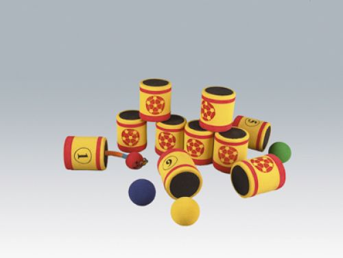 10 Dosen mit 5 Bällen im Tragerucksack. Sehr strapazierfähig. Für Riesenspaß ohne jedes Risiko.