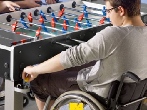 einen Rollstuhl angewiesen sind.